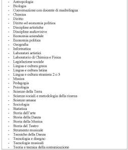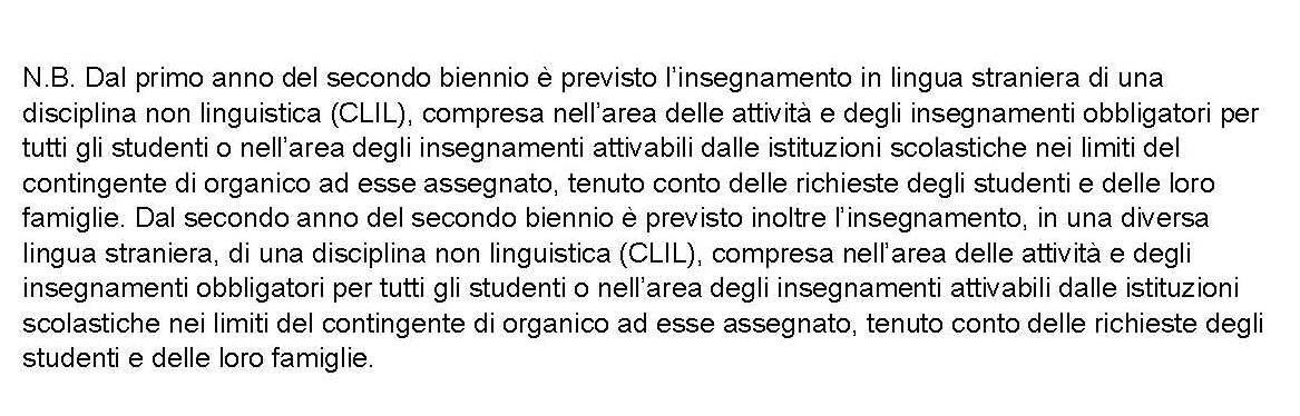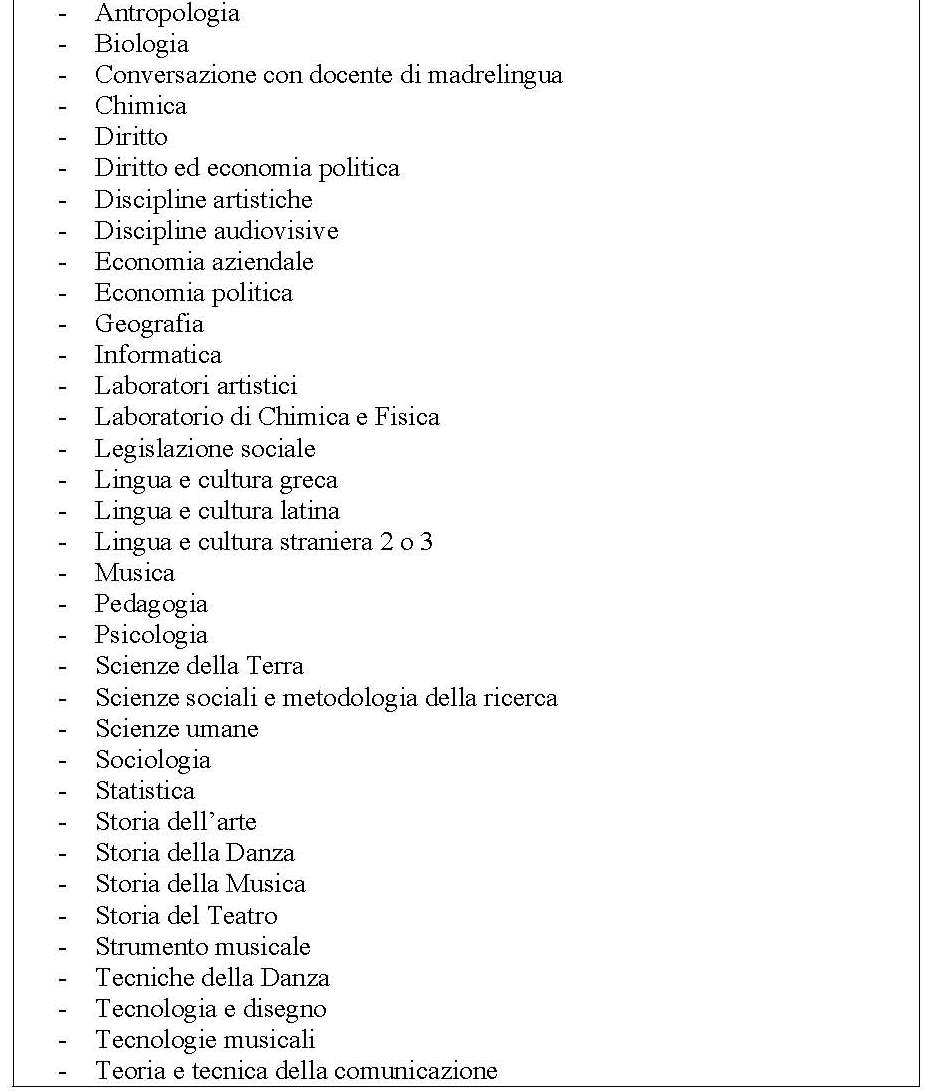 Alle discipline di ordinamento il Liceo potrà aggiungerne altri tra quelli compresi nel seguente elenco, secondo le indicazioni delle famiglie: