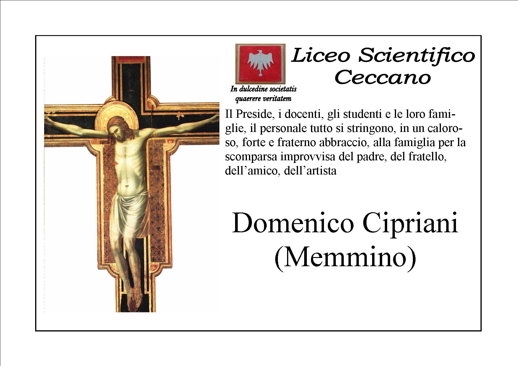 Il prof. Domenico Cipriani, docente di disegno e storia dell’arte, è scomparso improvvisamente nel primo pomeriggio di lunedì 26 aprile 2010
