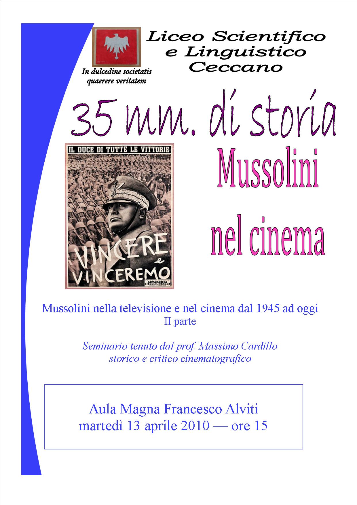 Mussolini nel cinema: martedì 13 aprile, II parte dell’incontro seminariale per 35 mm di storia, il corso tenuto dal prof. Massimo Cardillo sui volti del Duce nella cinematografia. Tra le citazioni e gli spezzoni che verranno proposti agli studenti, ai docenti e a chi vorrà intervenire, (l’incontro inizierà alle ore 15 nell’Aula Magna Francesco Alviti) ci saranno quelli tratti da “Il giovane Mussolini” di Gianluigi Calderone, con un intenso Antonio Banderas nel ruolo del Benito socialista fino alla sua espulsione dal partito, e con una notevole Claudia Koll completamente immersa nel difficile ruolo di Rachele giovane (sull’argomento, Cardillo ha di recente pubblicato un saggio in un volume miscellaneo dedicato a Nicola Piovani, prestigioso autore della colonna sonora). Nel pomeriggio troveranno spazio anche due significativi esempi di un modo che fu – anni ’50, ’60, ’70 – di fare racconto televisivo: “Le radiose giornate” del regista Marco Leto, con Giancarlo Pannese nel ruolo di Mussolini, e “L’impresa di Fiume” di Fausto Castellani (strepitosa sceneggiatura di Fabio Carpi) all’interno della mitica serie “TeatroInchiesta” con Marcello Tusco in un ruolo fortemente ambiguo nei confronti del Vate D’Annunzio. Mario Adorf si mostrerà poi come un luciferino politico avviato ormai sulla strada della dittatura e del restringimento delle libertà individuali e costituzionali nel più famoso “Il delitto Matteotti” di Florestano Vancini, in cui, seppur in una breve parte, giganteggia la figura di Vittorio De Sica nel ruolo del giudice istruttore. Un altro volto di Mussolini sarà quello di Luciano Catenacci nel film di Damiano Damiani “Girolimoni” con Nino Manfredi, che, nella parte del capro espiatorio riesce a far vibrare tutte le corde del suo smisurato repertorio. Chiuderà il pomeriggio un’analisi dei rapporti tra Mussolini e la sua figlia prediletta attraverso immagini tratte dallo sceneggiato “Edda” di Giorgio Capitani con Alessandra Martines nel ruolo della protagonista e con Massimo Ghini in quello del marito/delfino Galeazzo Ciano. Nel corso dell’intervento, inoltre, verranno fatti ascoltare passaggi significativi e inediti di interviste di Cardillo a Leto, Vancini e Damiani.