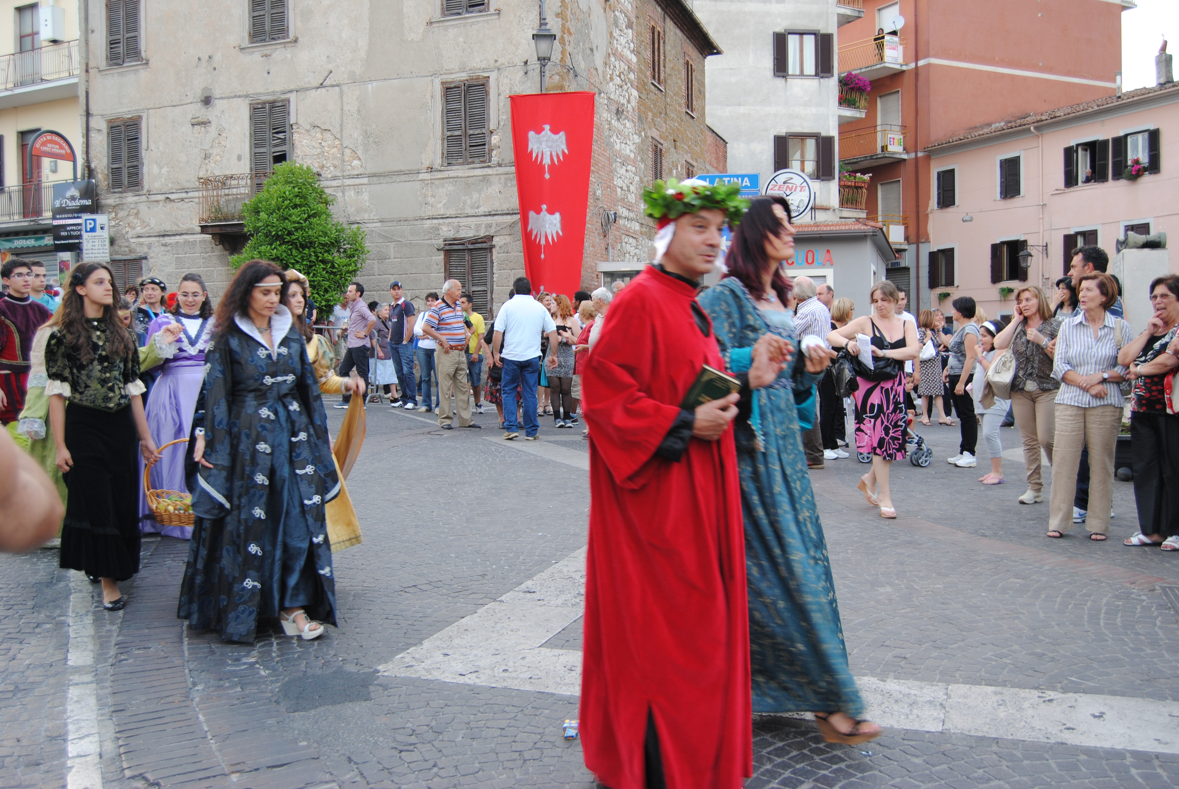 Porta S. Angelo vince il IV Palio di Egidia, strappando il drappo a Porta Castello, detentrice da due anni, dopo che nella prima edizione si era affermata Porta S. Giovanni. In una splendida cornice di colori, con oltre 500 personaggi in costume, si è così concluso il Corteo Storico, organizzato dal Liceo Scientifico di Ceccano, in collaborazione con l’Istituto Tecnico Commerciale di Ceccano, l’Istituto Professionale per i Servizi Alberghieri e della Ristorazione Michelangelo Buonarroti, la Scuola Media di Ceccano, la Direzione Diattica n. 1 e la Scuola paritaria S. Giovanna Antida. La lunga teoria di principi e cardinali, vescovi e nobili, guerrieri e poeti, pittori e letterati, cucinieri e popolani, cavalieri ed arcieri si è snodata dal liceo e dall’Itc accompagnati dal rullio dei tamburi che ha fatto tornare Ceccano agli splendiri della metà del XIV secolo. Il corteo è quindi arrivato in Piazza XXV