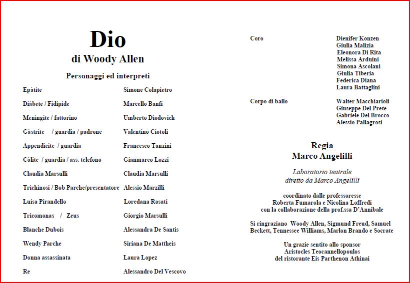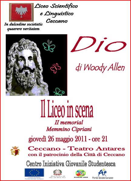 Grande successo della commedia Dio di Woody Allen, messa in scena al Teatro Antares dagli allievi del laboratorio teatrale del Liceo, giovedì 26 maggio. Qui le prime foto
