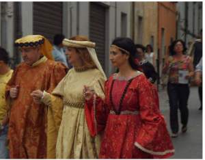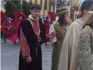 stemma partito tra quello dei de’ Ceccano, l’aquila argento in campo rosso, e quello degli Stefaneschi, le sei mezze lune alternate a bande, tutto rosso su campo bianco, hanno sfilato 400 figuranti in costume, con sbandieratori, tamburi, cavalieri, dame, principi e principesse, buffoni e giocolieri, armati, tutta una corte insomma in festa, che ha riportato Ceccano agli splendori del XIV secolo. Ospite d’onore del corteo il Coro Homilius di Avignone, la città al cui centro sorge oggi la Livrée Ceccano, la grande residenza fortificata che ospita la Mèdiathéque con lo stesso nome e nel cui interno ci sono appunto gli stemmi dei de Ceccano, degli Stefaneschi e l’arme di Annibaldo.