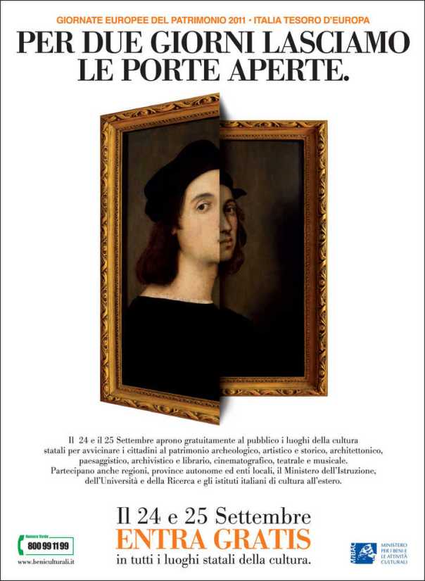 Italia, tesoro d’Europa. Il 24 e il 25 settembre saranno le Giornate Europee del Patrimonio 2011: sono una preziosa occasione per riaffermare insieme agli altri Paesi dell’Unione le radici culturali e storiche comuni, fondamentali per elaborare il senso profondo di un destino condiviso.