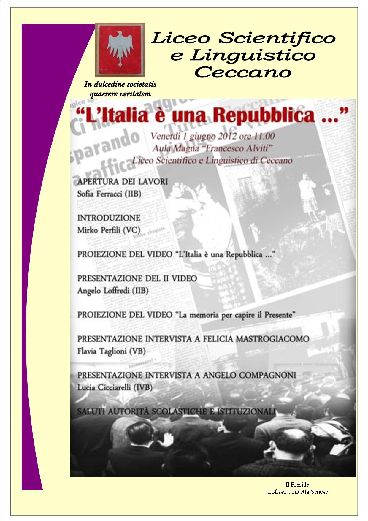 Hanno utilizzato i mezzi che sono loro più congeniali: video, fotografie, montaggio, interviste, telecamere computer e, a 50 anni di distanza, i ragazzi del Liceo raccontano una delle pagini più tristi della storia di Ceccano, quel 28 maggio del 1962, quando le forze di polizia spararono sui dimostranti di fronte allo stabilimnento Annunziata, uccidendo Luigi Mastrogiacomo e ferendo altre 20 persone. Dopo due settimane di sciopero la tensione era altissima e la situazione sfuggì di mano. I ragazzi sono andati ad intervistare i protagonisti di quei giorni: il sen. Compagnone, le donne che allora lavoravano nello stabilimento, i parenti di Mastrogiacomo, un tentativo di ricostruire la storia tramite la memoria di chi fu testimone di quel tragico pomeriggio e dei giorni che lo precedettero. I lavori preparati dai ragazzi saranno accompagnati da alcune brevi presentazioni che hanno lo scopo di informare soprattutto sul clima di quel maggio di 50 anni fa.