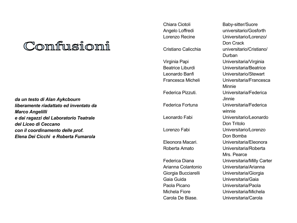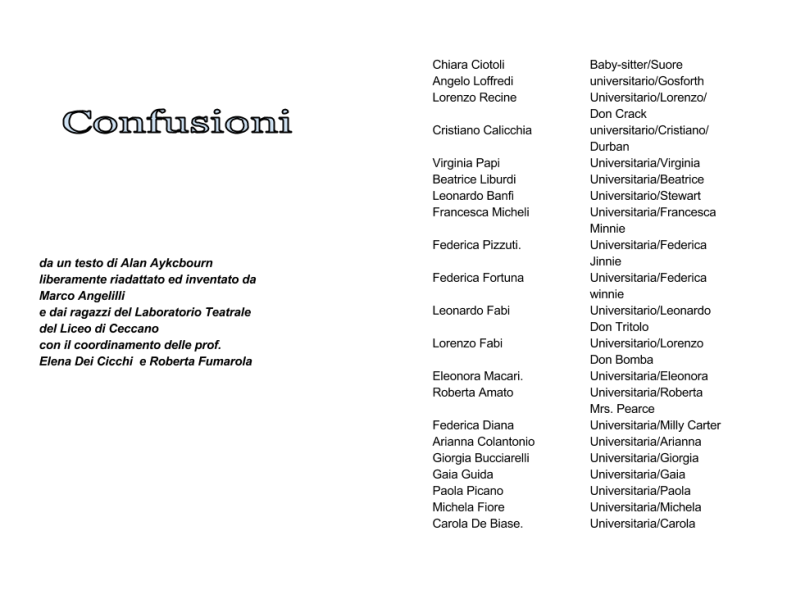 Pubblicato su 960 × 720 in Il Liceo in scena, Confusioni, il programma di sala