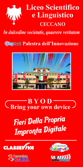 Si svolgeranno il 3 settembre i test di ingresso per matematica ed italiano al Liceo di Ceccano. Per la matematica i nuovi iscritti alla prima classe hanno avuto a disposizione una piattaforma elettronica con una serie di filmati sugli argomenti della prova, oltre 90 video preparati dagli insegnanti del biennio. I ragazzi hanno avuto accesso alla piattaforma tramite il loro account personale @liceoceccano.com e giovedì 3 settembre effettueranno il test on line, utilizzando il proprio smartphone, o il proprio tablet o il computer. E’ la metodologia BYOD (Bring Your Own Device, porta il tuo dispositivo) che i nuovi allievi del Liceo sperimenteranno immediatamente. L’utilizzo del proprio dispositivo consente al Liceo di Ceccano di poter contare sulla disponibilità di tutte le