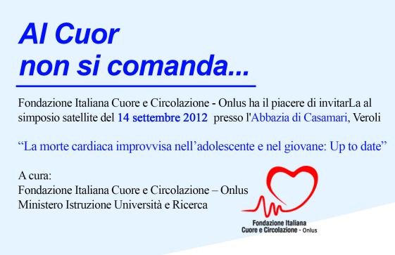 che si svolgerà insieme alla Società Italiana di cardiologia L’iniziativa si svolge in collaborazione con il Ministero dell’Istruzione e rientra nel progetto “A scuola di cuore” – promosso dal MIUR, dalla Società Italiana di cardiologia (SIC) e dalla Fondazione Cuore e Circolazione. in particolare lo screening cardiologico, consistente in un controllo elettrocardiografico rivolto a studenti delle classi delle istituzioni scolastiche secondarie di II grado , è stato promosso e realizzato concretamente dalla Fondazione Italiana Cuore e Circolazione, il cui presidente è il prof. Francesco Fedele, Capo dipartimento di scienze cardiovascolari e respiratorie dell’Università la Sapienza di Roma .