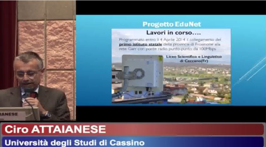 Sono qui presenti anche gli studenti del Liceo di Ceccano, prima scuola ad essere collegata con il GARR di Cassino, tramite la Federazione Eduroam. Così, il prof. Ciro Attaianese ha salutato la delegazione del Liceo presente, lunedì 24 novembre, all’inaugurazione del Campus Universitario del Lazio Meridionale. All’incontro sono presenti il presidente della Giunta Regionale, Zingaretti, quello della Provincia, Pompeo, il sindaco della città martire, Petrarcone. La delegazione del Liceo è composta dai rappresentanti degli studenti del Consiglio d’Istituto, da alcuni dei tutores e dall’orchestra Juvenis Harmonia Faraterna, guidati dalla prof.ssa Vittoria D’Annibale