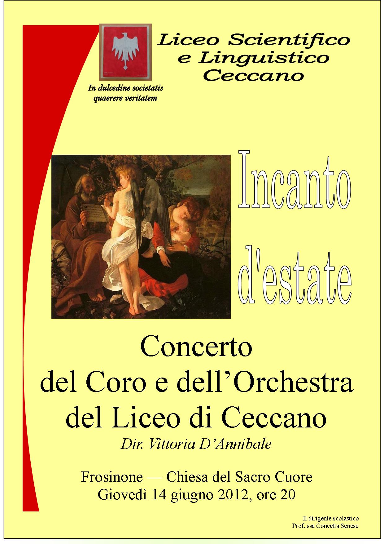 Parlano sempre male dei giovani, ma guardando voi, sentendo la vostra musica il giudizio deve cambiare, voi siete realmente speranza per il futuro. Così mons. Luigi Di Massa, parroco del Sacro Cuore di Frosinone ha commentato il concerto del coro e dell’orchestra del Liceo di Ceccano che ha presentato, giovedì 14 giugno nella chiesa frusinate, Incanto d’estate con musiche di Mozart, Racine, Fauré. I complessi musicali del Liceo sono diretti da Vittoria D’Annibale