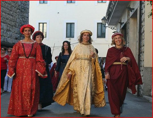 al dono dell’arme, stemma partito tra quello dei de’ Ceccano, l’aquila argento in campo rosso, e quello degli Stefaneschi, le sei mezze lune alternate a bande, tutto rosso su campo bianco, hanno sfilato 250 figuranti in costume, con sbandieratori, tamburi, cavalieri, dame, principi e principesse, buffoni e giocolieri, armati, tutta una corte insomma in festa, che ha riportato Ceccano agli splendori del XIV secolo.