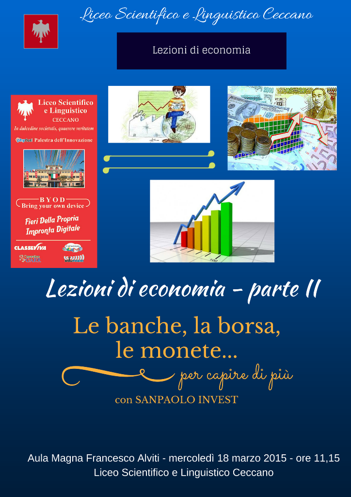 Lezioni di economia è un’iniziativa, svolta in collaborazione con la San Paolo Invest che ha messo a disposizione gli insegnanti per il corso. Nei licei infatti non c’è l’insegnamento dell’economia che pure nei suoi elementi fondamentali dovrebbe essere patrimonio di ciascun cittadino.