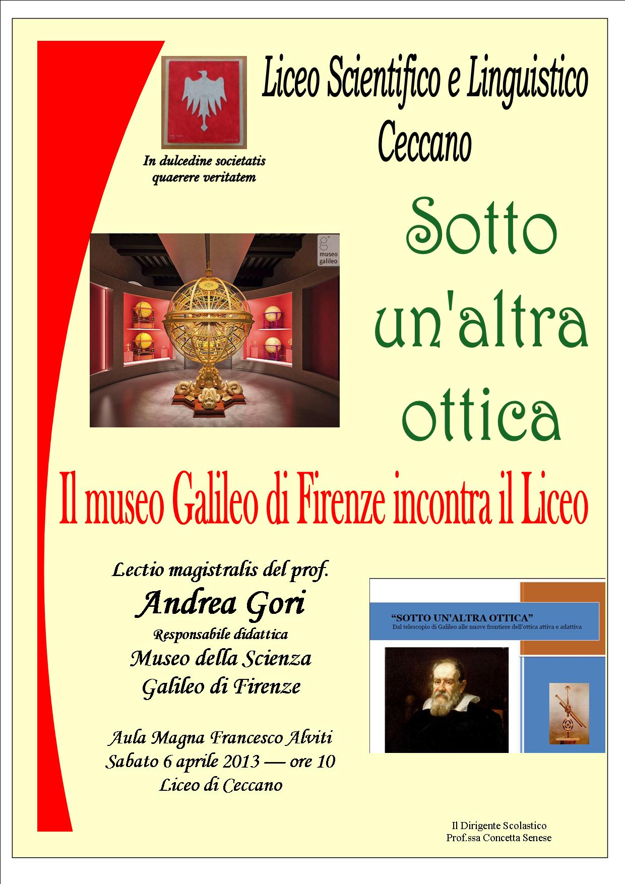 Cambiare il modo di fare scuola, partire dall’esperienza: dovrebbe essere una cosa norma e invece spesso non è così. L’elemento teorico, pur importante, non è corroborato da altrettanto impegno pratico che addirittura dovrebbe precederlo, secondo il metodo scientifico. A Firenze, qualche giorno fa, gli allievi delle classi IV hanno visitato il museo della scienza intitolato a Galileo Galilei. Un’altra è andata a Londra per studiare l’osservatorio di Greenwich. Abbiamo visto ragazzi incantati dal moto uniformemente accelerato o dall’astrolabio, dalle macchine elettriche… E’ un nuovo modo di fare scuola che il Liceo sta sperimentando da anni, nell’ambito della promozione della cultura scientifica: si deve studiare l’ottica? si costruisce un telescopio. E il telescopio c’è: ma l’hanno fatto anche per le celle solari, per i conduttori. Sabato 6 aprile, alle ore 10, nell’aula magna Francesco Alviti, le parti saranno rovesciate: non saranno i ragazzi ad andare al museo ma il museo verrà al Liceo. Infatti il prof. Andrea Gori, direttore dei servizi didattici del museo Galileo di Firenze terrà una lectio magistralis sul tema Sotto un’altra ottica, nell’ambito dell’omonimo progetto del nostro Liceo, presentato recentemente in un convegno nazionale a Fiesole, dedicato appunto alla didattica della scienza, per cui il Liceo ha ottenuto per due anni consecutivo il Premio Nazionale.