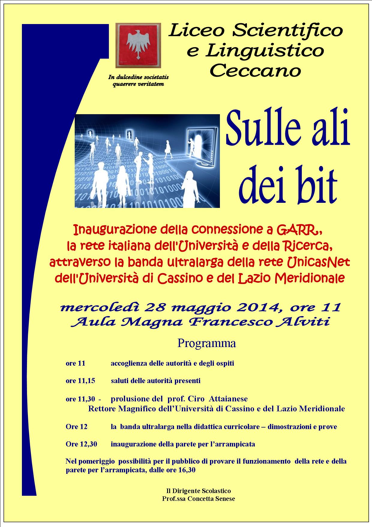 banda larga che deve raggiungere tutte le aule degli istituti scolatici. Soltanto con la banda ultralarga, al Liceo di Ceccano è a 100 Mbps simmetrici, con ponte radio, è possibile utilizzare registri elettronici, lim, tablet. Senza banda ultralarga si rischia di spendere invano denari che dovrebbero servire ad inserire le nuove tecnologie nella didattica e che invece possono generare frustrazioni infinite se tutto non funziona perfettamente. Il convegno si svolgerà nella Sala Averroè dalle ore 14 alle 15,30. Subito dopo il Liceo presenterà l’esperienza del BYOD nel convegno della Fondazione Rosselli per il concorso Scuola+: la trasformazione della scuola, il Liceo 2.0 ottenuto partendo dalla tecnologia che è in tasca agli alunni, dai loro smartphone e tablet, rinunciando così ad investimenti costosi e scegliendo il ruolo di guida nell’educazione all’utilizzo dei nuovi media. Tutti connessi per educare al pensiero critico, alla condivisione, alla collaborazione, alla competenza diginate e culturale, alla capacità di essee imprenditori di é stessi e di fare le scelte migliori per la propria vita.