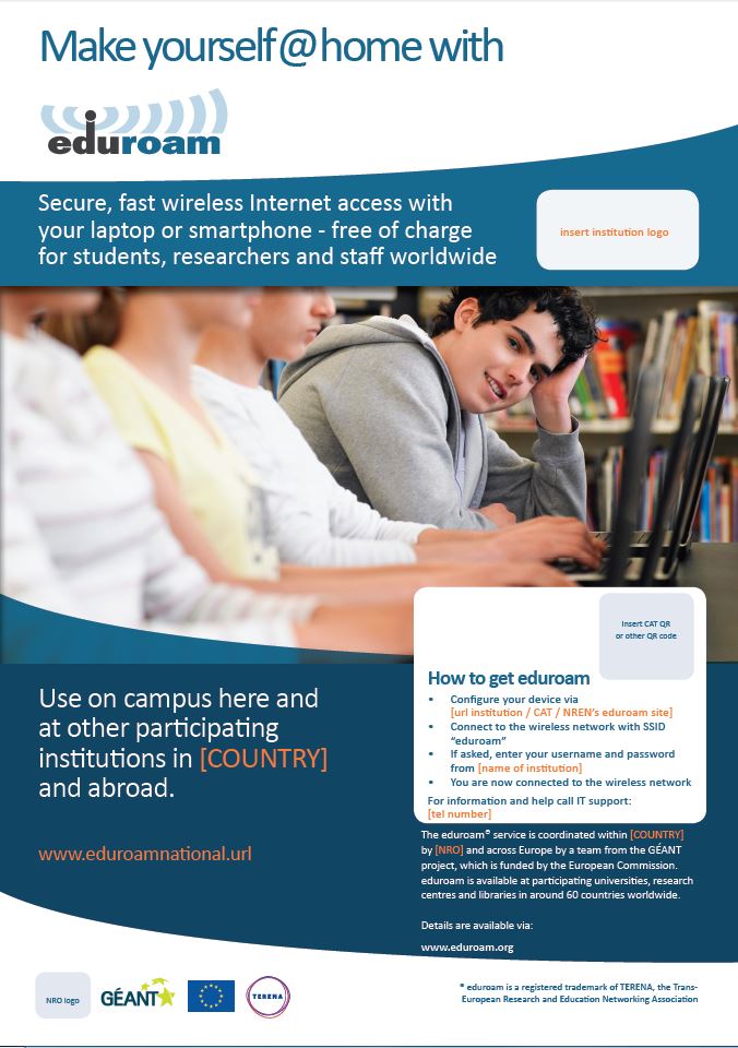 eduroam (Education Roaming) è un servizio che offre un accesso wireless sicuro alla rete. Gli utenti roaming che visitano un istituto che aderisce all’iniziativa sono in grado di utilizzare la rete locale wireless (WLAN) usando le stesse credenziali (username e password) che userebbero nella propria istituzione d’appartenenza, senza la necessità di ulteriori formalità presso l’istituto ospitante. Eduroam è un’infrastruttura basata su una rete di server RADIUS che utilizza 802.1x.