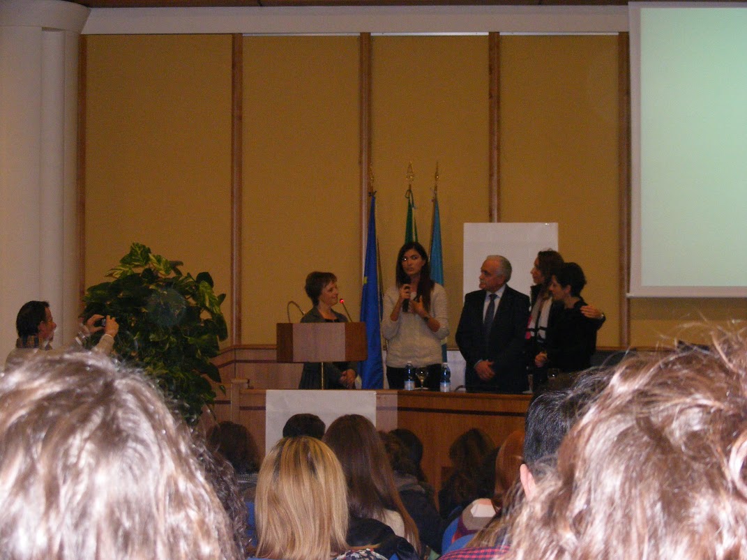 finalmente si arriva al momento tanto atteso della premiazione. L’inevitabile speranza si mescola con l’umiltà quando si realizza che noi, studenti della piccola e calorosa comunità del Liceo Scientifico e Linguistico fabraterno, non avremmo nemmeno sperato di poter spiccare sui 300 elaborati dei circa 640 partecipanti; ma improvvisamente lo stupore si insinua in noi: una menzione speciale nella sezione multimediale del concorso è stata consegnata sottoforma di targa di merito alla classe 4E, accompagnata dalla professoressa De Cicchi per il progetto: “La sconfitta non è Donna” E proprio quando l’orgoglio era già tanto, accade l’inaspettato: per il primo premio della sezione multimediale le labbra della presentatrice pronunciano distintamente il nome del Liceo Scientifico e Linguistico di Ceccano, per il progetto della classe IVF, accompagnata dalla professoressa Marro. Molti, confusi e felici, i commenti a caldo dei vincitori per l’elaborato: “Una donna nuova in un paese per vecchi”, ispirato alla vicenda di Franca Viola, prima donna che, denunciando una violenza subìta e rifiutando per prima il matrimonio riparatore, divenne simbolo della crescita civile del secondo dopoguerra italiano; un cortometraggio girato nello stesso scenario vallecorsano usato dal grande regista De Sica per il suo capolavoro, “La Ciociara”, interpretato da Sophia Loren. Tutti loro, pur non privandosi dell’inevitabile divertimento causato dalla collaborazione tra amici, non hanno potuto fare a meno di sentirsi intimamente colpiti dalla vicenda che stavano riproducendo.